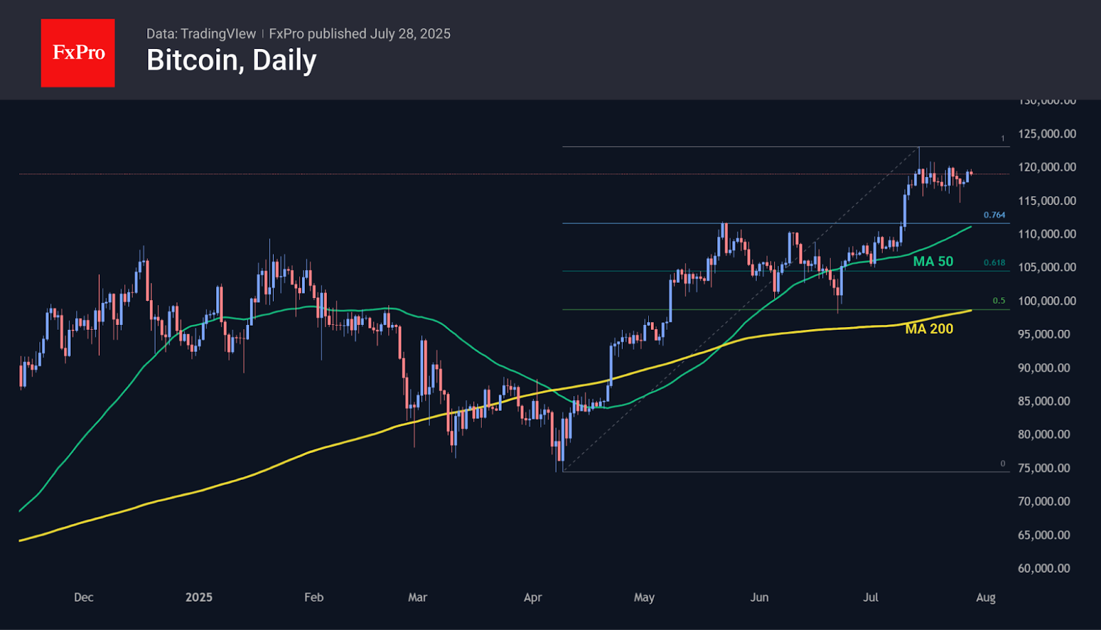 July 28, 2025 – FXEmpire – After a sharp sell-off last week triggered by large-scale Bitcoin transfers, the cryptocurrency market has swiftly reversed course, with major tokens bouncing back and investor sentiment stabilizing. As of Monday, total crypto market capitalization surged by 2.4% over the last 24 hours, reclaiming the $4 trillion mark a level not seen since early 2022.