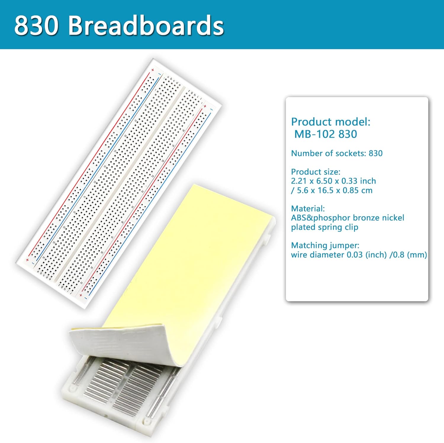Upgraded Electronics Component Fun Kit Power Supply Module, Jumper Wire, 830 Breadboard, LED,Capacitor,Diode,Resistor,Transistor,Compatible Raspberry Pi, STM32