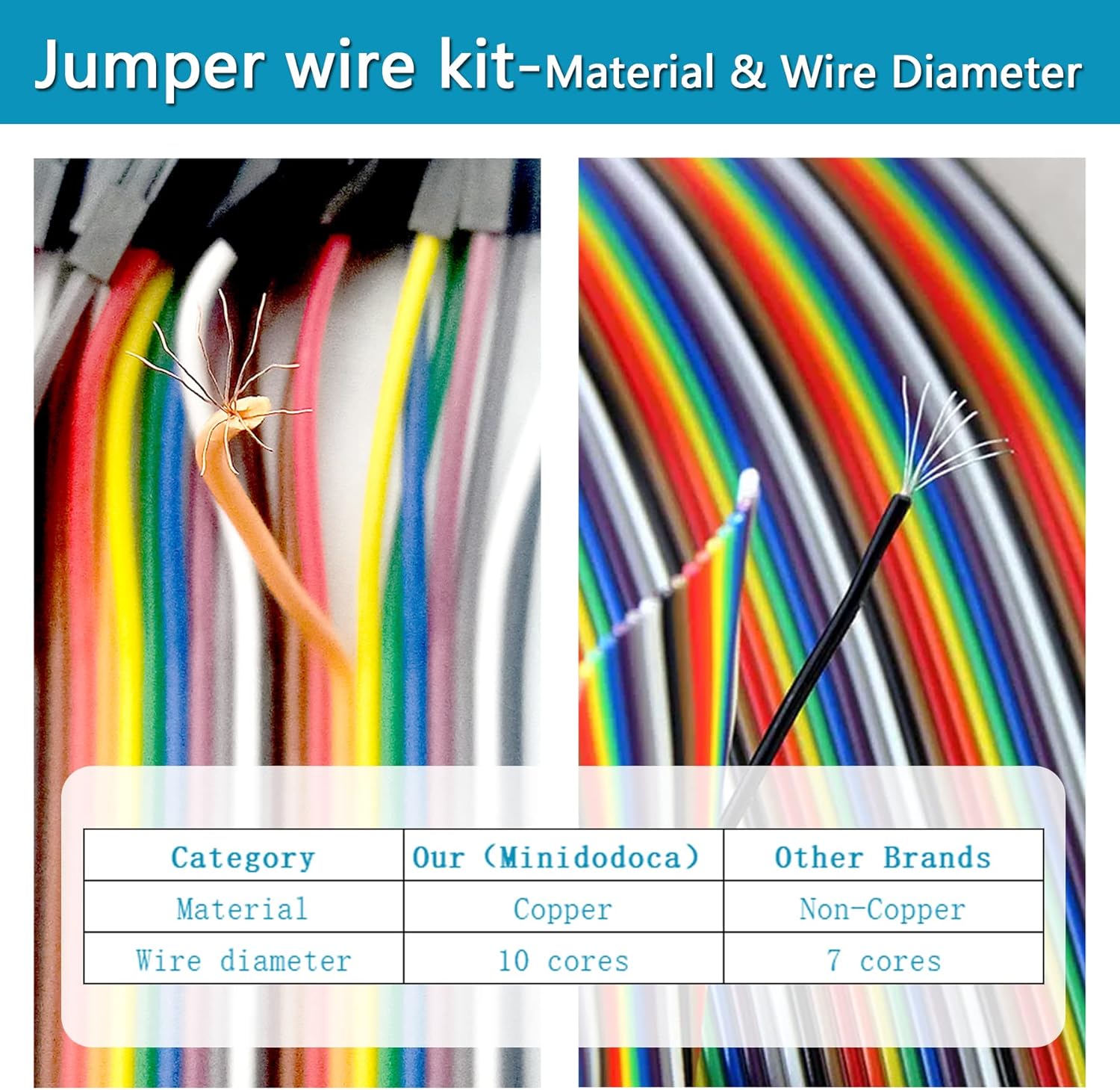 <br>Minidodoca Electronics Fun Kit - The upgraded kit not only power adapter but also has more component specifications, it comes with commonly used sensors and components. Compatible with Raspberry Pi, it can meet almost all your needs.<br>Kit includes:9v1A power supply Adapter+ Breadboard Power Supply Modules+Battery Clip+830 Breadboard+DuPont wire+ IC 4N35, IC 74HC595,IC 74HC138+4-digit digital tube display+12 values Capacitor+Alligator clip+Banana Plug+10 values Resistor+5 values LED+buttons+Buzzer+Precision Potentiometer+ Thermistor+RGB LED+ Photoresistor+Pin header+Transistor+Diode etc.<br>Power module with 5.5MM * 2.5MM input interface, you can choose 9v 1A adapter as input or choose 9v battery as input (the battery needs to buy their own)<br>LED working voltage 2.2V-3.4V, power module output is 3.3V,5V, please connect series buck resistor to avoid damage when using.4 digital tube display is common anode, please pay attention to the wiring rules when using。<br>The products are all tested and then divided to ensure that each component works properly to the maximum extent possible.Use process has any questions, please contact our customer service.