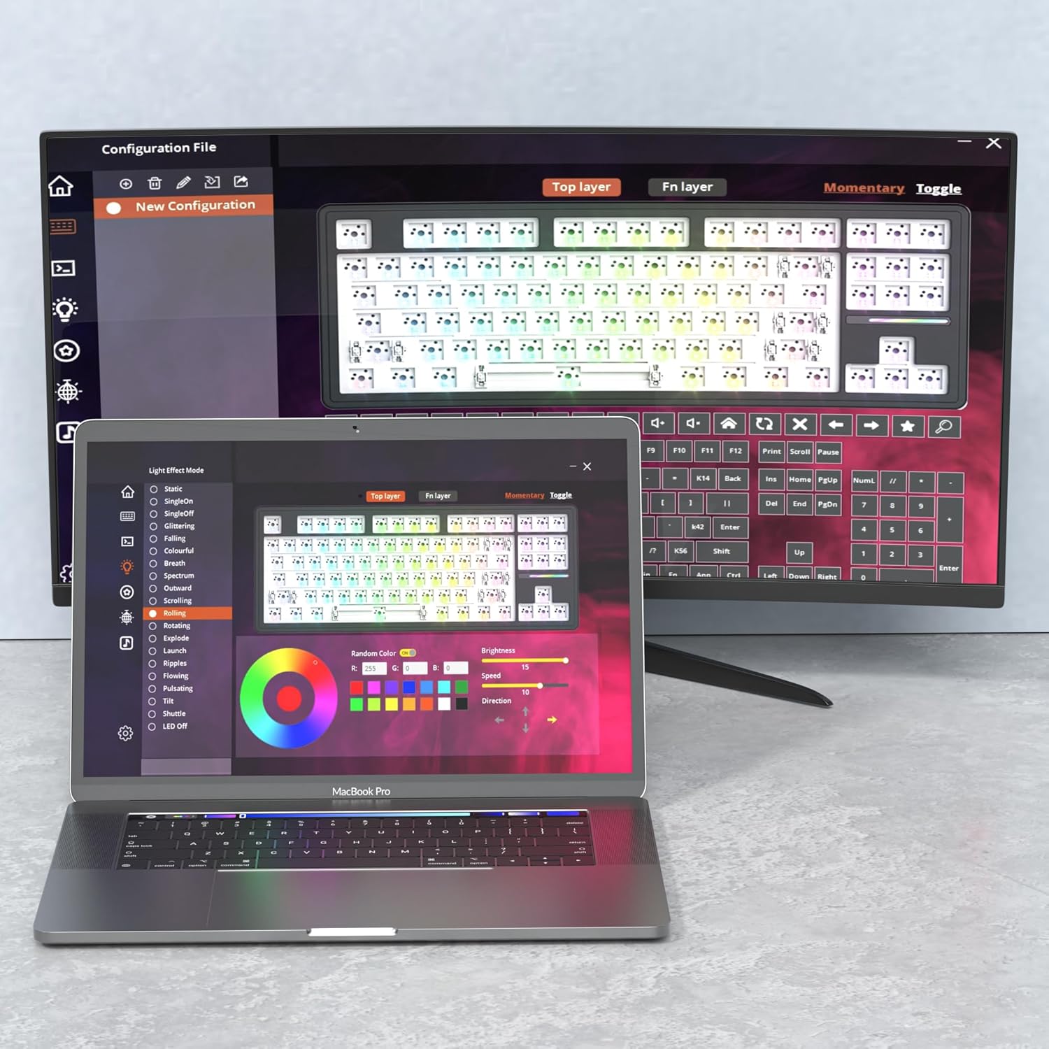 <br>✅【A Fascinating Mechanical Keyboard Kit】The M87pro is an elegantly, simple but such a functional RGB mechanical keyboard kit for any one who is looking for something new and want to try customization. Every key is thoughtfully positioned to provide effortless access, allowing you to navigate your digital realm with ease and precision<br>✅【Sound Absorption Foam&Silicon Bottom Pad】To ensure a whisper-quiet typing experience, the M75pro equipped with high-quality silencing pads, absorbing the clatter of keystrokes without sacrificing responsiveness. Each press feels like a symphony of comfort and precision, allowing you to immerse yourself fully in your work or gaming sessions<br>✅【Hot-Swappable Switch-Compatible with 3Pin/5Pin Switch】Equipped with hot swappable terminals, you could install the MX switches directly without soldering, easily build up your own mechanical keyboard. Support NKRO. Supports both 3 pin or 5 pin switches, such as Cherry, Otemu, Gateron, Kailh and other MX switches and its clones.<br>✅【Software Customization】Up to 18 factory-set lights and music rhythm modes are free to choose from the keyboard. Custom software is also available for designing your new effects. Build macros, and set up per-key lighting and effects.<br>✅【Compatible with Windows and Mac Systems】Full keys anti-ghosting bring you more smooth gaming experience. Detachable USB-C keyboard cable make the 75% gaming keyboard more portable and customized