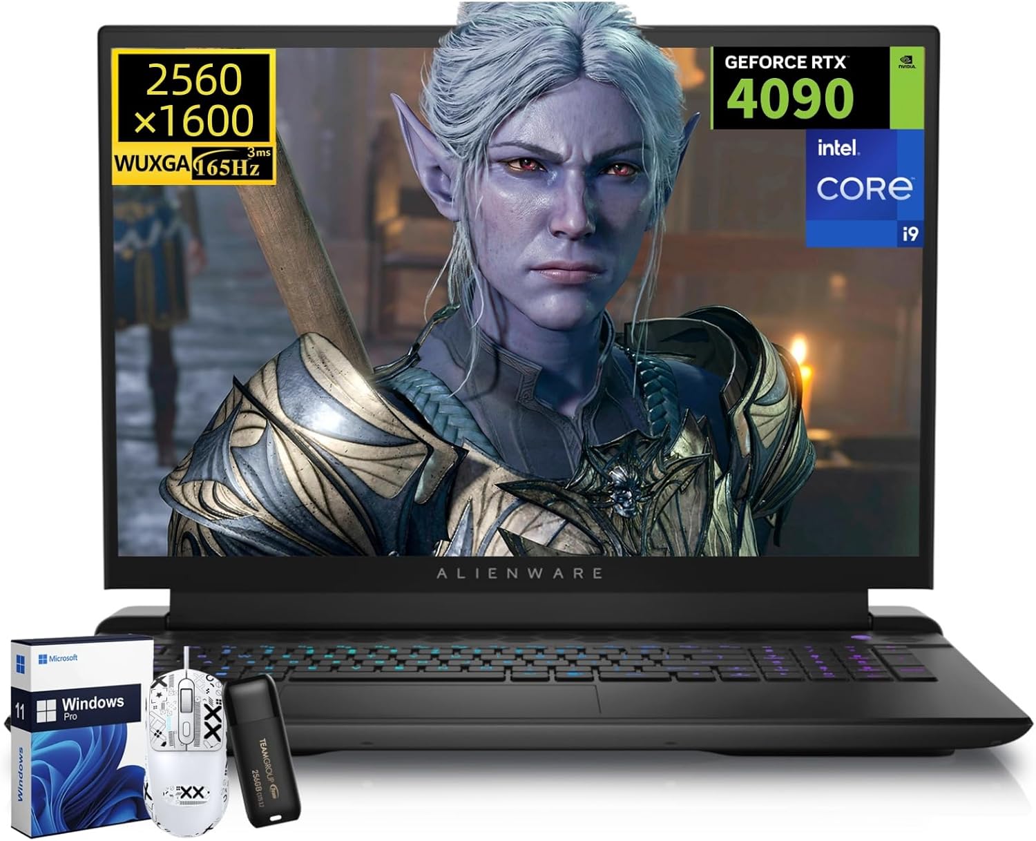 Dell Alienware m18 R2 Gaming Laptop, RTX 4090 16GB GDDR6, Intel i9 14900HX(Up to 5.8GHz), 18" QHD+ (2560x1600) 165Hz, 64 GB DDR5, 2 TB SSD, WiFi 7, Bluetooth 5.4, Win 11 Pro, Gaming Mouse, 256GB UFD