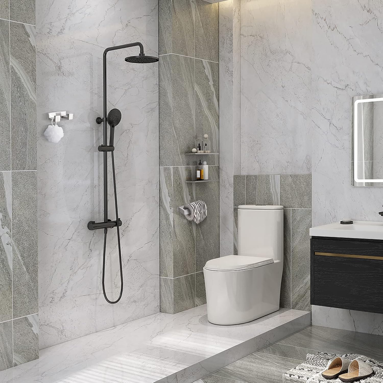 Customers appreciate the modern look of the towel holders. They find the build quality good and the product sturdy. Many consider them a great value for the price. The holders fit well with decor and bathroom sizes. However, some customers find the toilet paper holder too small or narrow to hold full rolls. There are mixed opinions on the installation process.