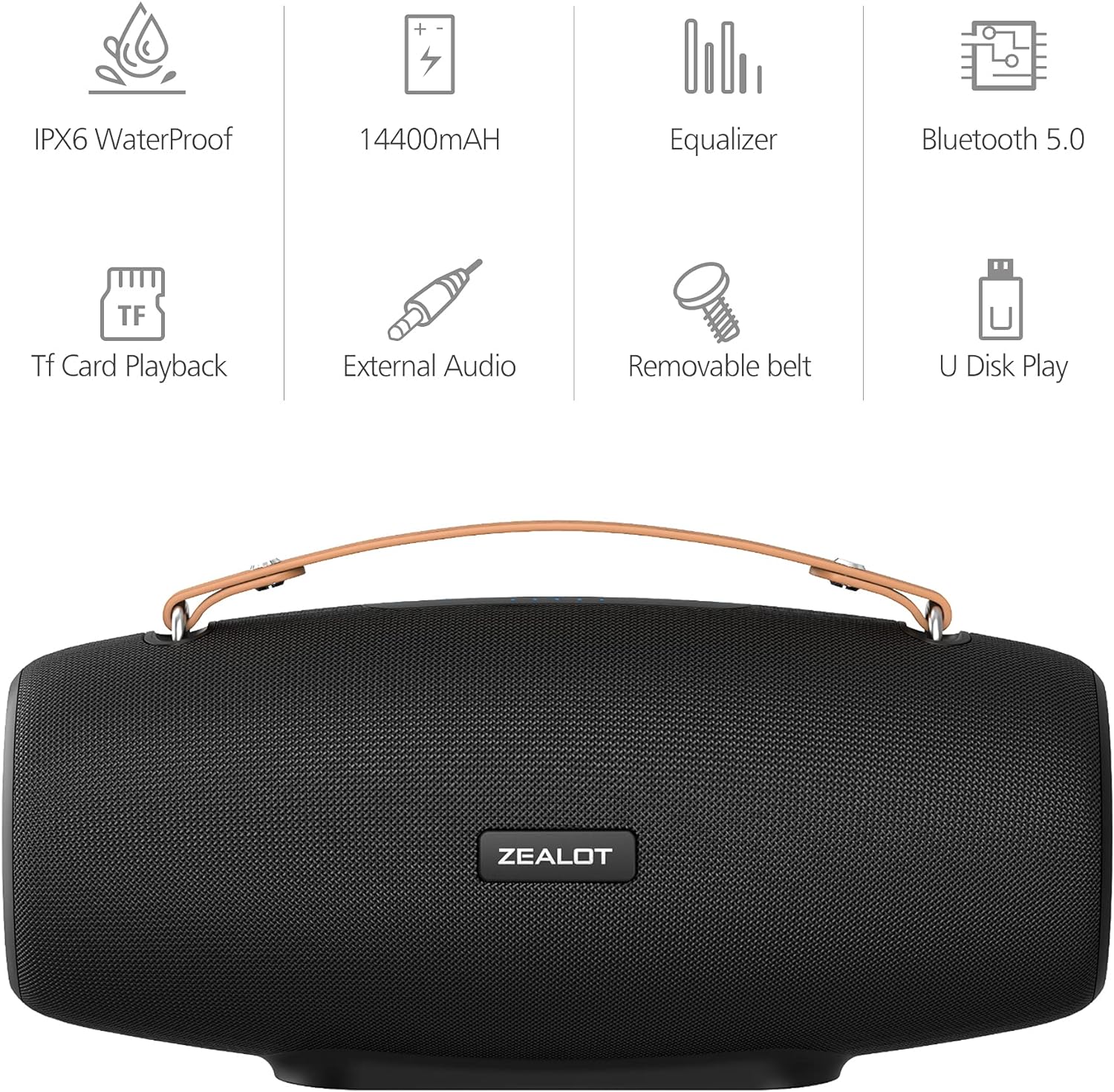 <br>【UNMATCHED SOUND WITH DUAL PAIRING POWER】-The ZEALOT S67 bluetooth speakers come with a customized design featuring 2 woofers and 1 tweeter, achieving an impressive 75W output. Paired with a DSP chip, it delivers exceptional bass and clear treble for a top-tier stereo experience. The dual pairing function allows you to link two S67 speakers wirelessly, instantly creating 150W of surround sound. Perfect for parties, movie nights, or outdoor events, it’s like having a live concert in your backyard. A great gift idea for both men and women on Valentine’s Day or birthdays<br>【CUSTOMIZE YOUR SOUND EXPERIENCE】-ZEALOT S67 offers an amazing sound experience. Want clear voices or explosive bass? Simply use the EQ button to switch between 3 sound modes. Enjoy rich bass, clear mids, or crisp treble, all with dynamic light modes to enhance the atmosphere. With just one click, you can customize your listening experience to suit your preferences. Designed for active individuals, these portable bluetooth speakers are perfect for any indoor or outdoor activity, such as trips, beach outings, or parties<br>【READY FOR ANY WEATHER】-The ZEALOT S67 is a rugged, IPX6 waterproof bluetooth speaker built to withstand rain and splashes. Whether you're caught in a downpour or enjoying a beach day, it won’t let you down. The hard shell and removable strap make it easy to carry, while its waterproof design ensures it’s ready for both indoor and outdoor adventures. Take your favorite music outdoors, whether you're hiking, camping, or just spending time with friends and family, and let the ZEALOT S67 keep the fun going<br>【LONG-LASTING BATTERY FOR ENDLESS FUN】-With a powerful 14,400mAh battery, the ZEALOT S67 portable bluetooth speaker gives you up to 20 hours of playtime on a single charge, making it perfect for extended outdoor use. Whether you're camping, hosting a backyard BBQ, or relaxing on the beach, this speaker ensures the music keeps going. Its long battery life, combined with deep bass and clear sound, makes it a great companion for all your outdoor and extended activities<br>【VERSATILE FEATURES FOR OUTDOOR ADVENTURES】-The ZEALOT S67 features advanced Bluetooth 5.2 technology, offering a stable connection range of up to 100 feet, with faster pairing and more reliable signal transmission. It also has a 3.5mm AUX port, a TF card slot, and USB support for various media options, making it ideal for travel. Whether you’re at the beach, pool, or on a road trip, this portable speaker delivers high-quality sound and is the perfect gift for Valentine’s Day, or any special occasion<br>【HASSLE-FREE SERVICE YOU CAN COUNT ON】-ZEALOT offers a 12-month hassle-free purchase experience and long-term customer service with the ZEALOT S67 bluetooth speaker. These speakers are the perfect gift for anyone who enjoys premium sound quality. You can give them as a gift to friends or family or keep them for yourself. With the Amazon app, you can scan the Transparency barcode on the packaging to verify your purchase and ensure authenticity. Thank you for choosing ZEALOT, and enjoy your S67 bluetooth speaker